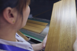 对经选板合格的坯板首先进行砂光定厚,确保挑选的坯板面层平 整;后进行四周边槽榫加工,产品的加工精度尺寸偏差全部严于 星空官方网站国家标准。